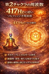 417Hzは、ソルフェジオ周波数の中でも「第2チャクラ」に深く関係する音として知られています。