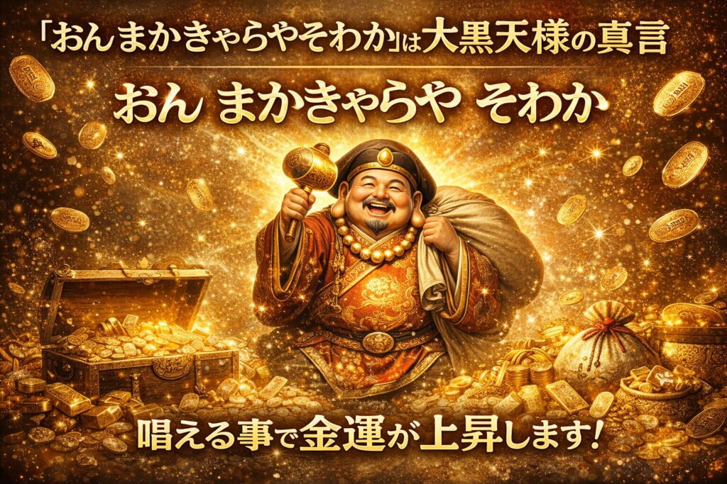 「おんまかきゃらやそわか」は大黒天様の真言。唱える事で金運が上昇します。