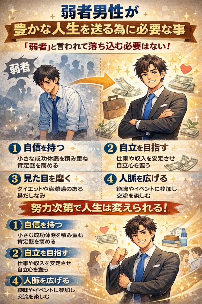 弱者男性が豊かな人生を送る為に必要な事。弱者と言われて落ち込む必要はない