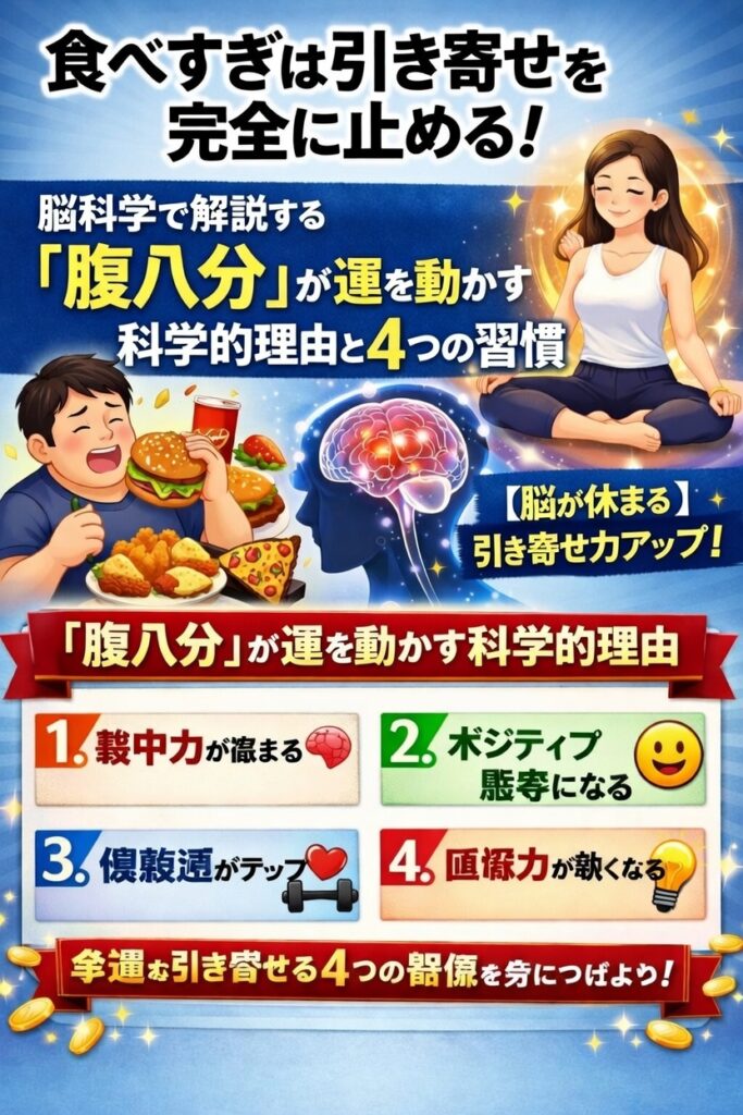 食べすぎは引き寄せを完全に止める!脳科学で解説する「腹八分」が運を動かす科学的理由と4つの習慣