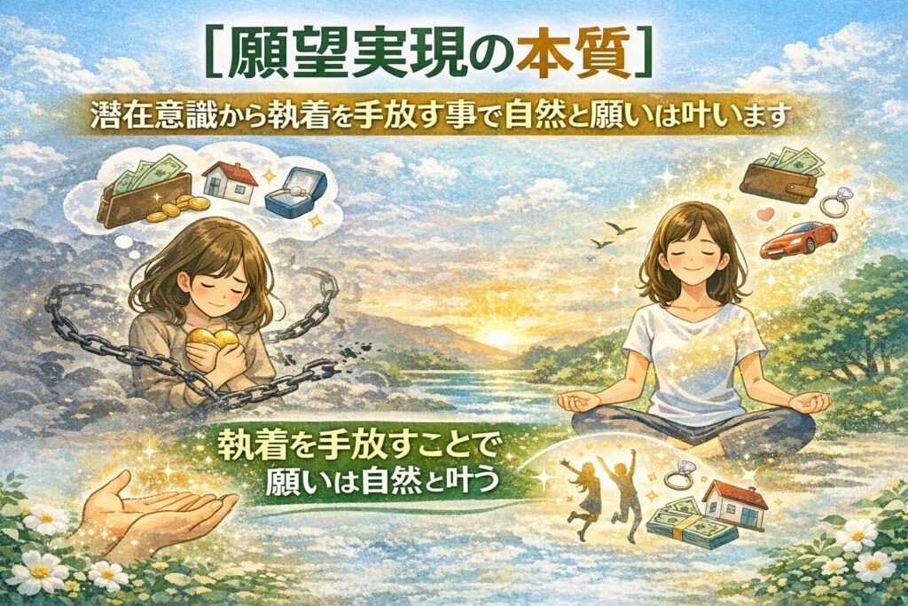 【願望実現の本質】潜在意識から無い物に対する執着を手放す事で自然と願いは叶います。